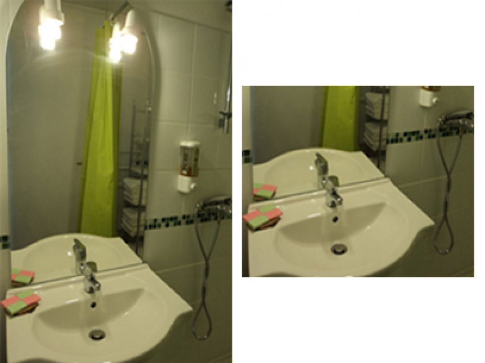 - salle de douche avec sèche-cheveux